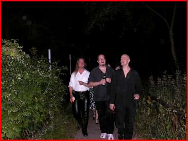 Wir waren froh, fotografiert zu werden, war doch der Heimweg nach dem Konzert so dunkel, daß man sich während des Blitzlichtes kurz orientieren konnte. (Schu, Wursta und Dirk).