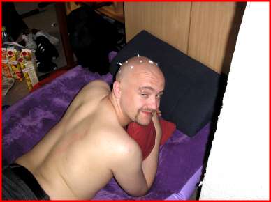 In Bad Freienwalde gab es ein neues Haarwuchsmittel zum Spottpreis, welches Dirk sofort testet (Einwirkzeit 17 Std.). Erfolgreich? - Guckst Du nächstes Bild.