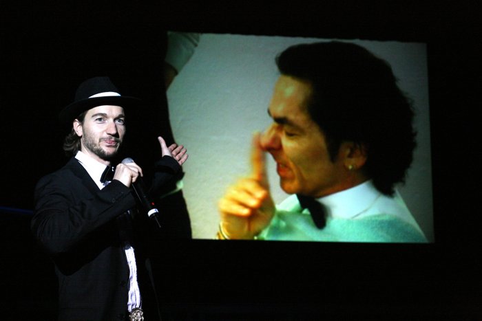 Simon ist out of control because die Show schon begonnen hat und er jetzt! das Publikum begrüßen muß! |