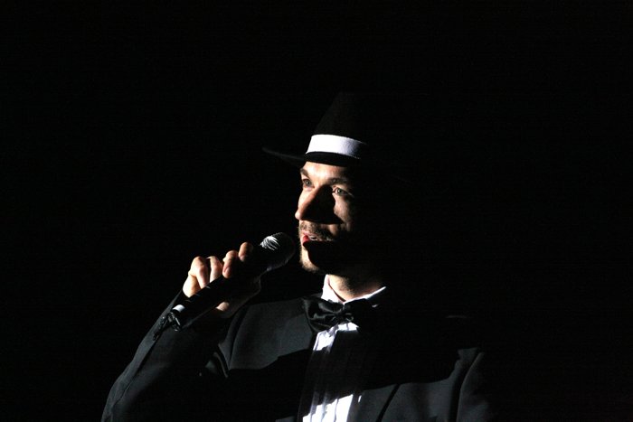 Thommy erklärt dem Publikum bei der Begrüßung, daß sie sowohl bei unserer Show, als auch bei einem Casting dafür zu Gast sind. |