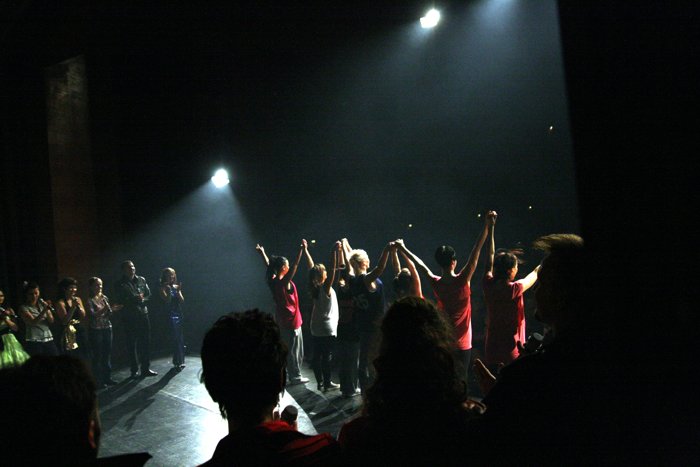 Absage, viel Applaus, viele Danksagungen, auch an unsere Tänzer (Bühnenkante). |
