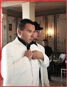 Wursta sehr selbstkritisch vor dem Spiegel. "Wer das erste Knopfloch verfehlt, kommt mit dem Zuknöpfen nicht zurecht." (Goethe)