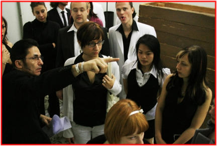 "Wenn Ihr vom Hotel kommt, geht ihr dort durch die Tür, dann geht es entweder links durch die Tür zum Studio, oder geradeaus zum Catering Bereich. Zur Maske müßt ihr dann vor dem Aufenthaltsraum die Treppe hoch, wenn ihr zum Kostümfundus wollt, geht ihr vor dem Catering..." (Au Mann!) |