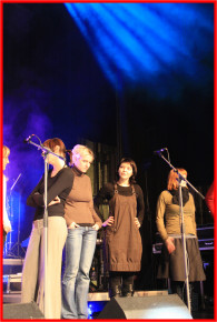 Während des Soundchecks v.l.n.r.: Nicole (nur die Nasenspitze, Maxi, Sabbel, Jenny, Steph und der Arm (rot) von Kathi.