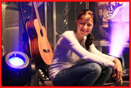 Hanna sitzt hier während des Soundchecks auf dem Podest vom Gitarristen und freut sich wie Bolle über soviel bunte Lichter.