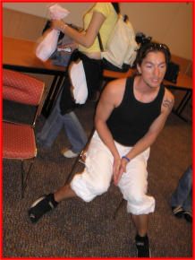 Dieser Chorsänger muß offensichtlich mal und weiß nicht, wo er darf...