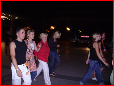 Von der Aftershowparty zum Bus, um im Hotel weiter zu feiern.