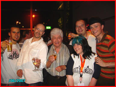 Zur Aftershowparty auf dem Studiogelände gehören natürlich auch Fotos mit den Promis: v.l.n.r.: Sebastian, Dirk, Gotthilf Fischer, Uli, Wursta, René.