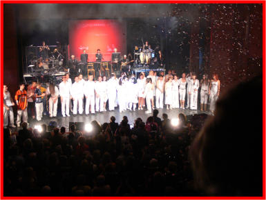 Schlußszene Tänzer-bunt, Chor-weiß, Band-schwarz